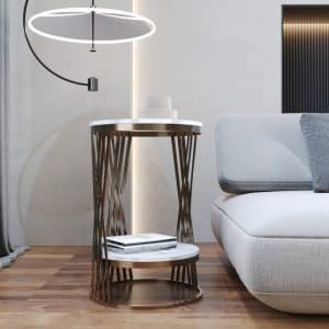 ترابيزة لينو ترابيزة انتريه مودرن من الاستيل مستطيلة الشكل مزودة برف مربع في المنتصف