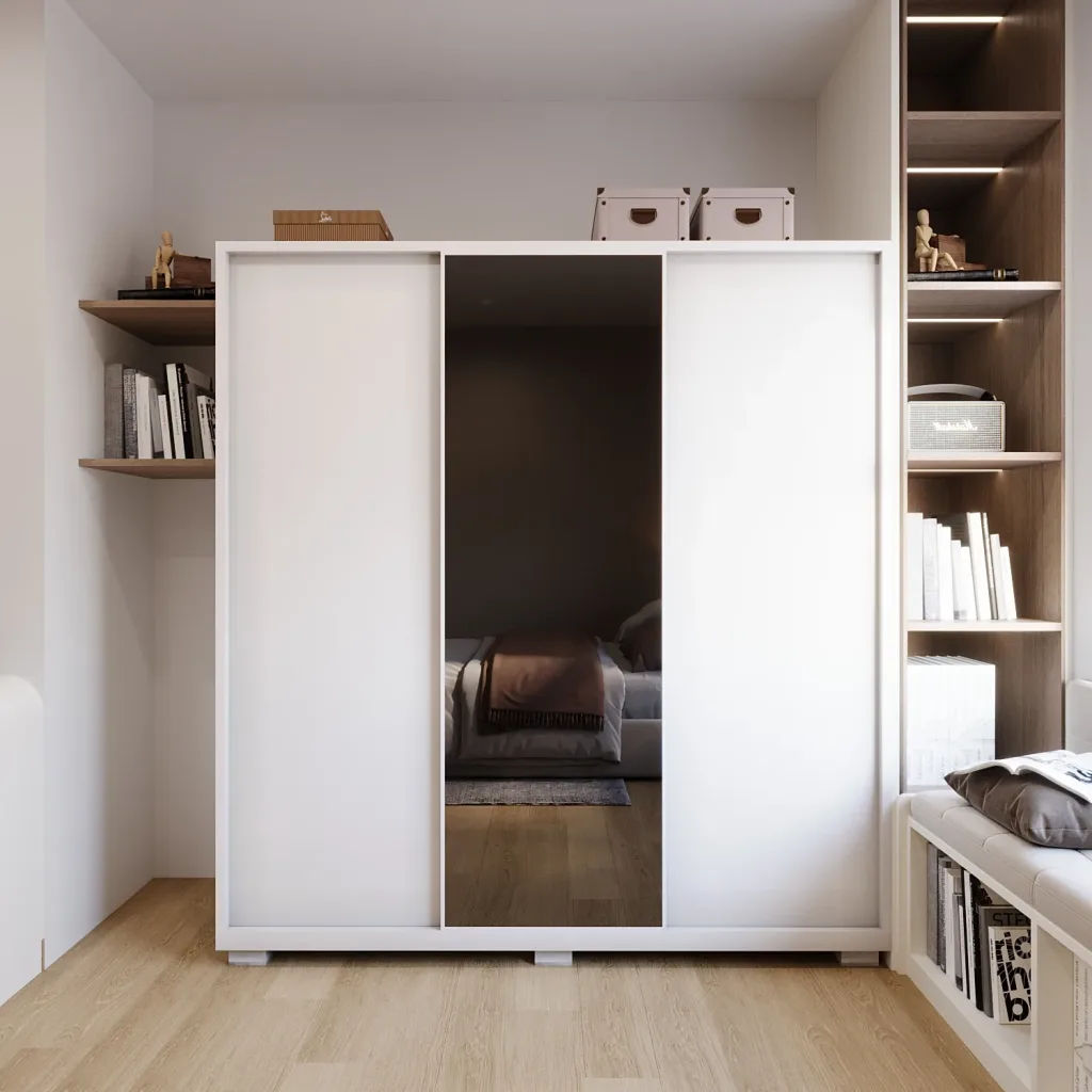 لايف ستور دولاب ملابس خشب مودرن أبيض دولاب جرار 3 ضلفة