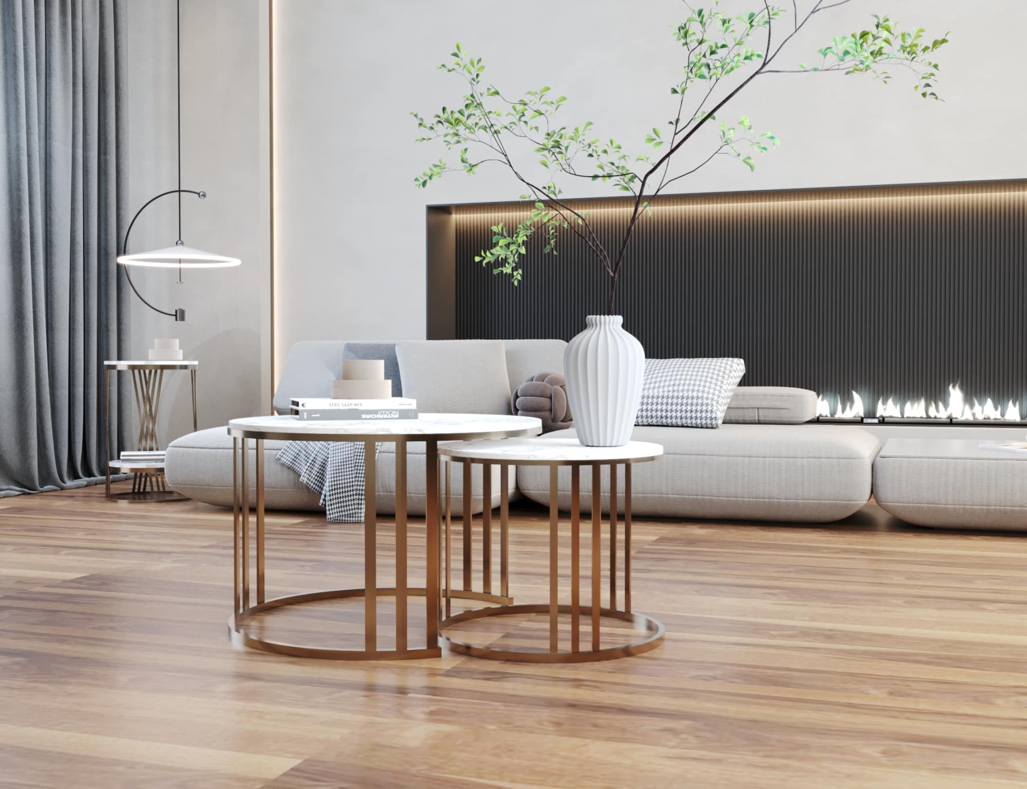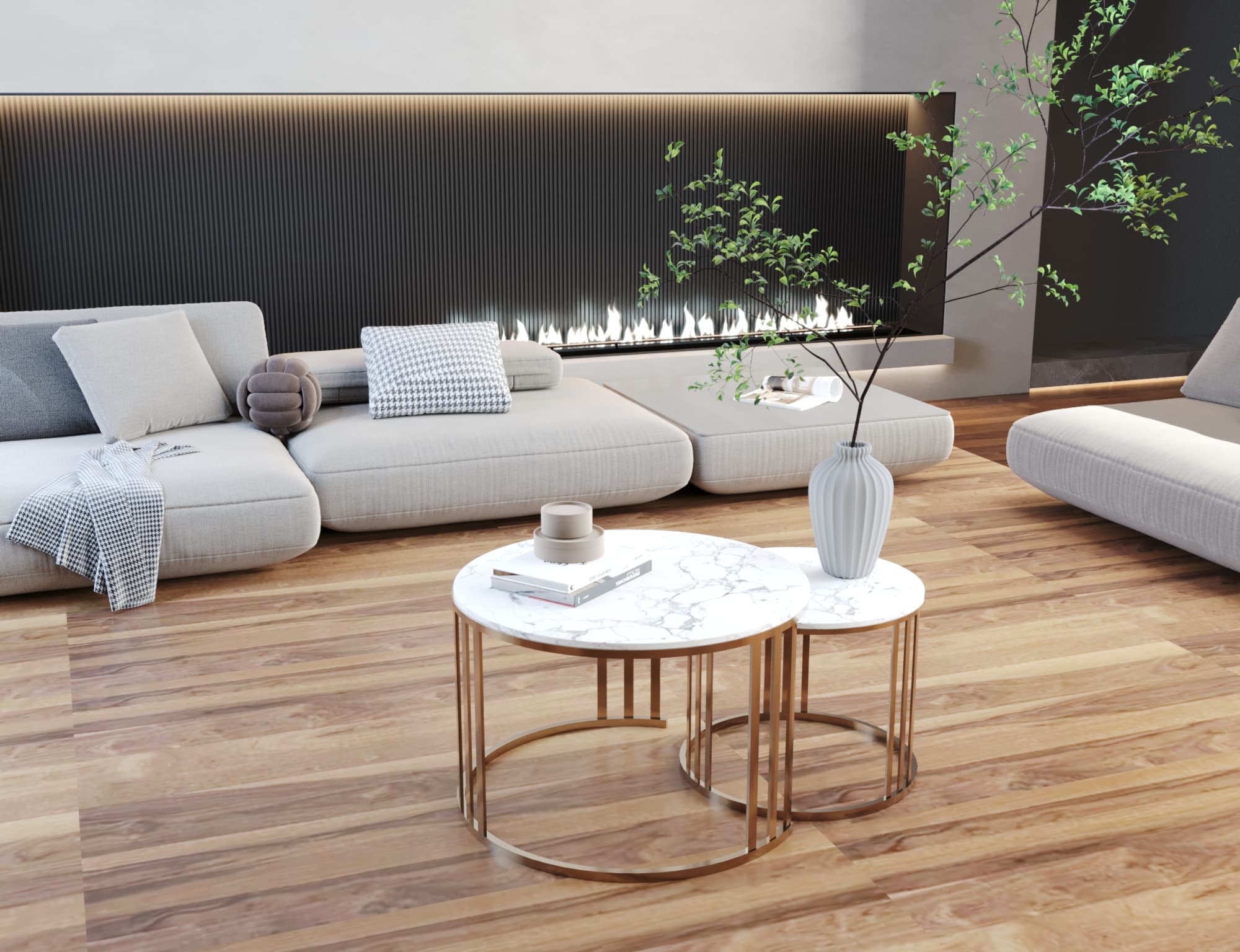 ترابيزة انتريه مودرن مكونة من قطعتين إحداهما كبيرة الحجم، والأخرى متوسطة تضفي على ديكور المنزل طابع عصري مميز يمكن وضعها في أماكن مختلفة في المنزل، حيث يمكنك استخدامها كترابيزة قهوة، أو ترابيزة ركنة مودرن، أو ترابيزة انترية مودرن.