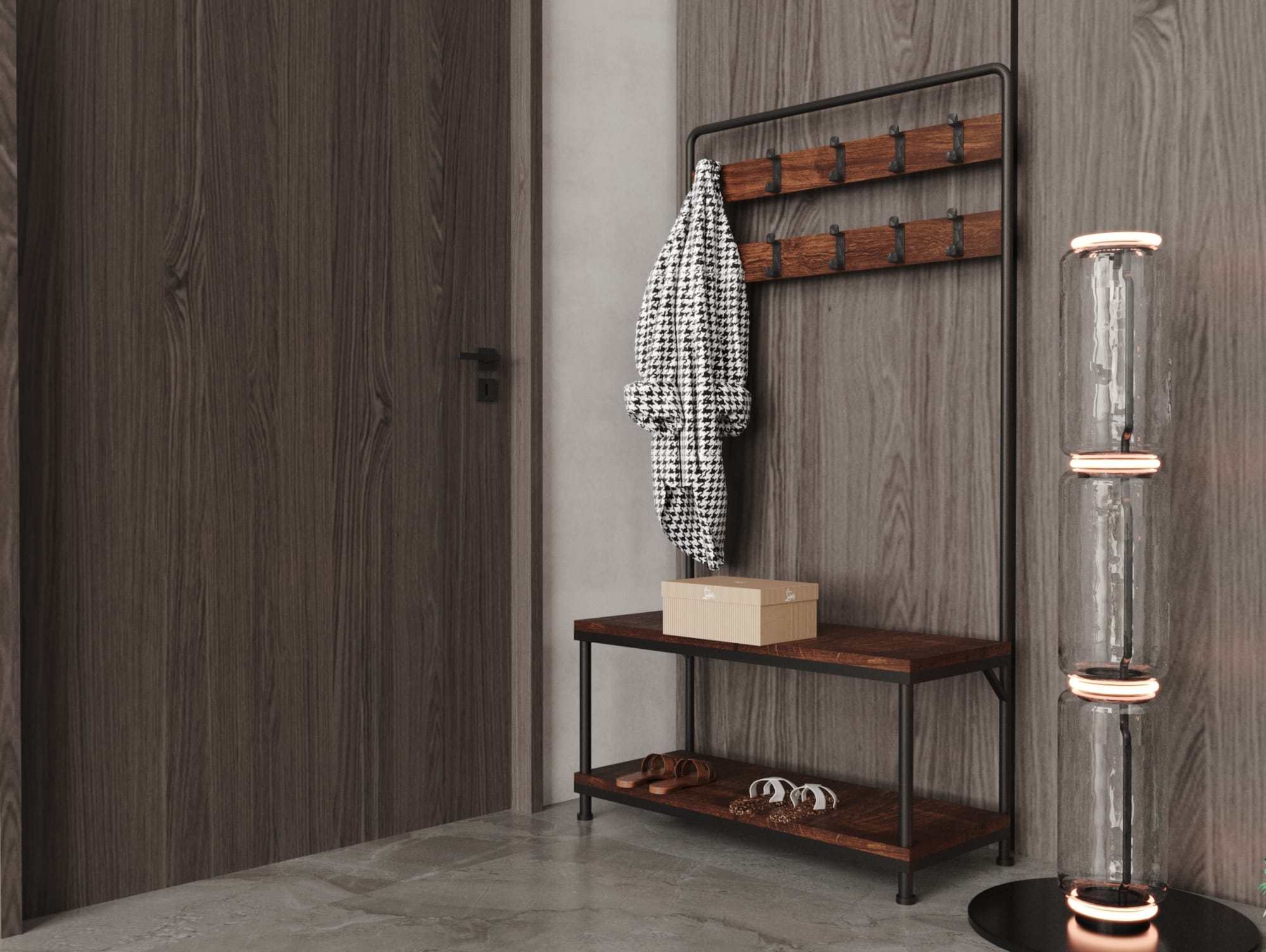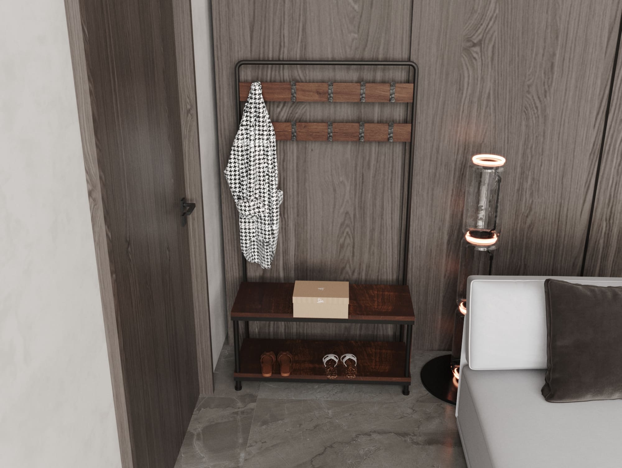 تخلص من الفوضي وبعثرة الأحذية مع جزامة خشب مودرن بتصميم أنيق يتناسب مع مختلف الديكورات، حيث إنها مزودة بشماعة لتعليق الملابس عليها مما يساعدك على ترتيب منزلك بشكل جميل.