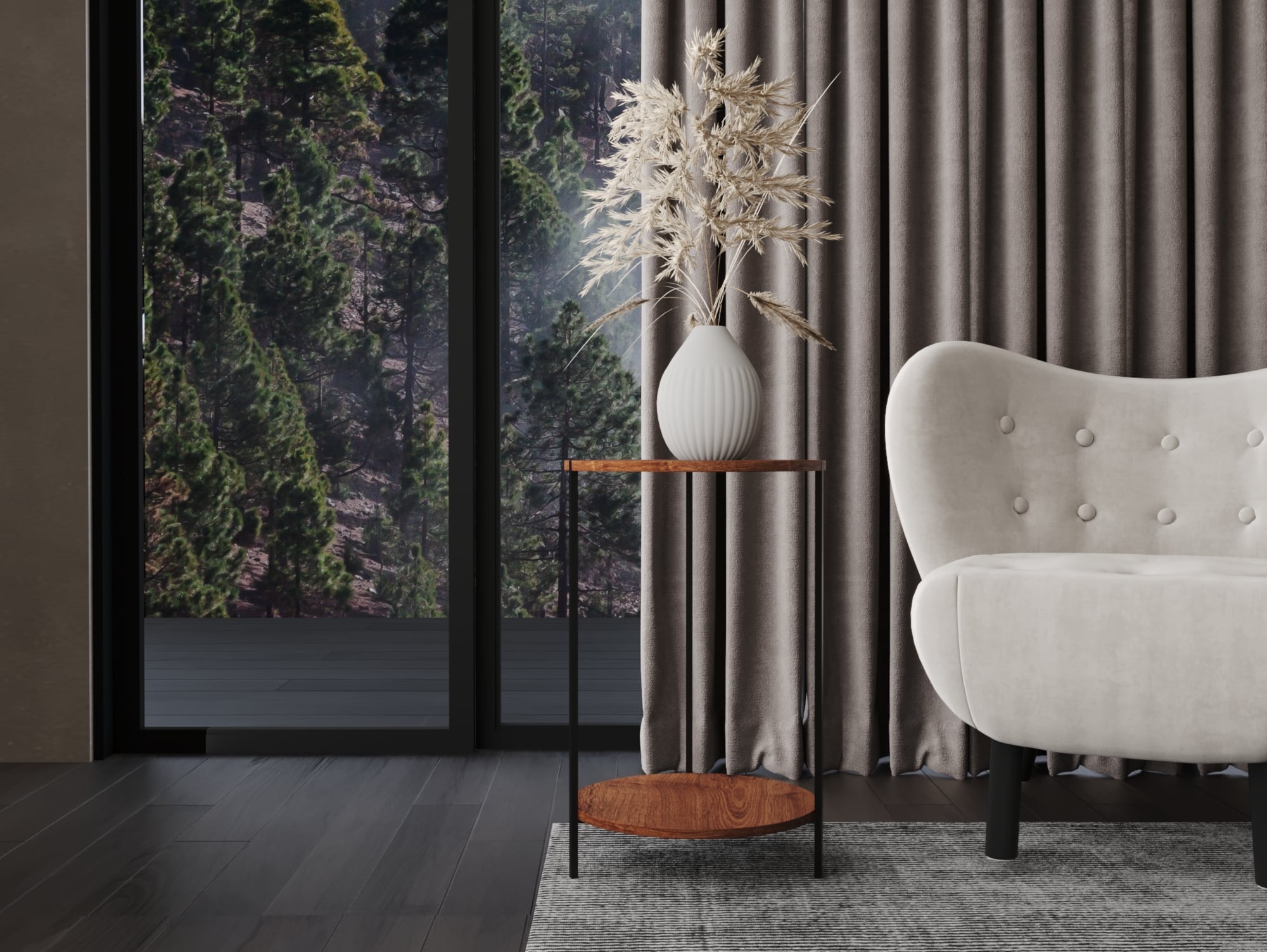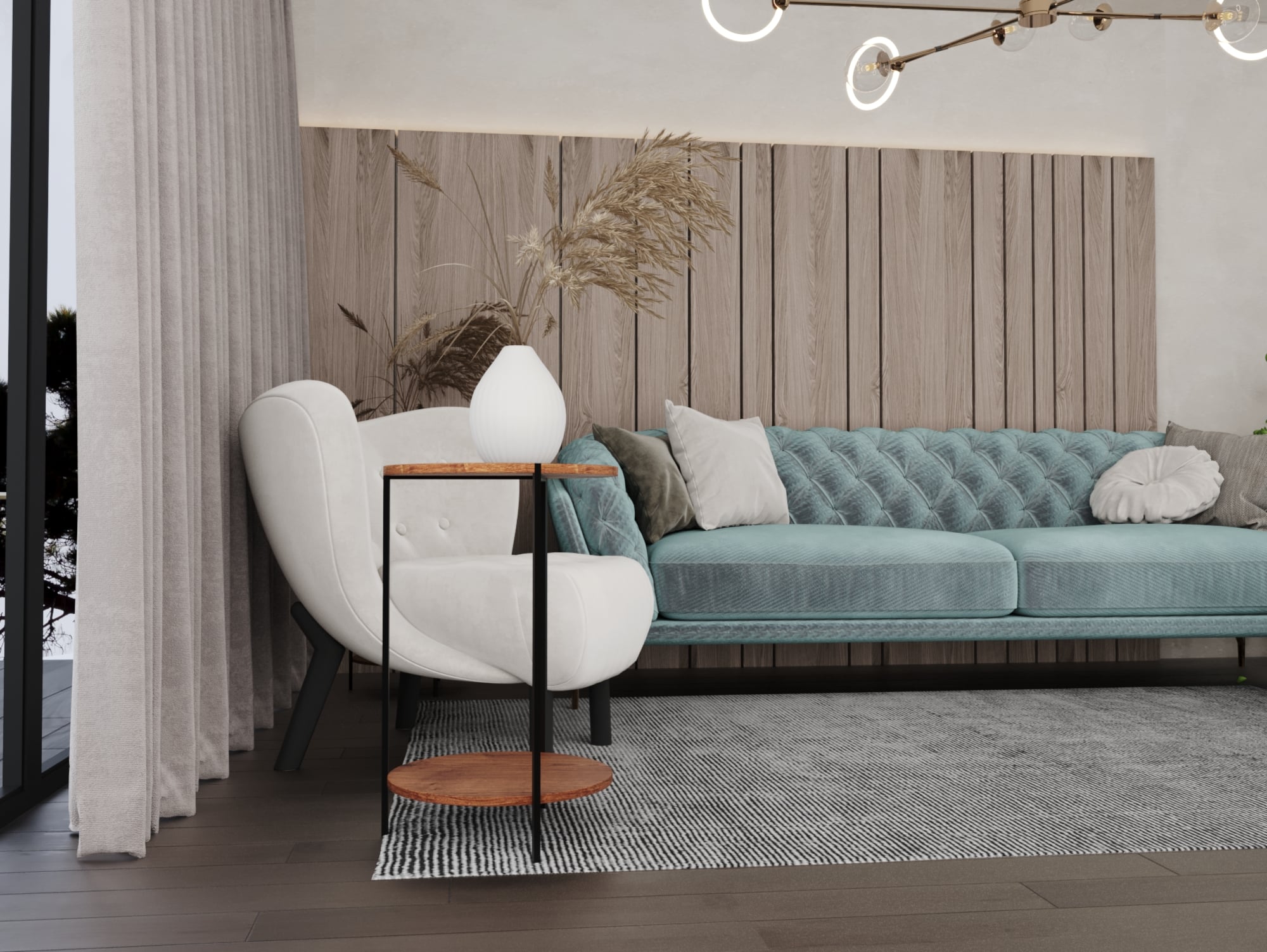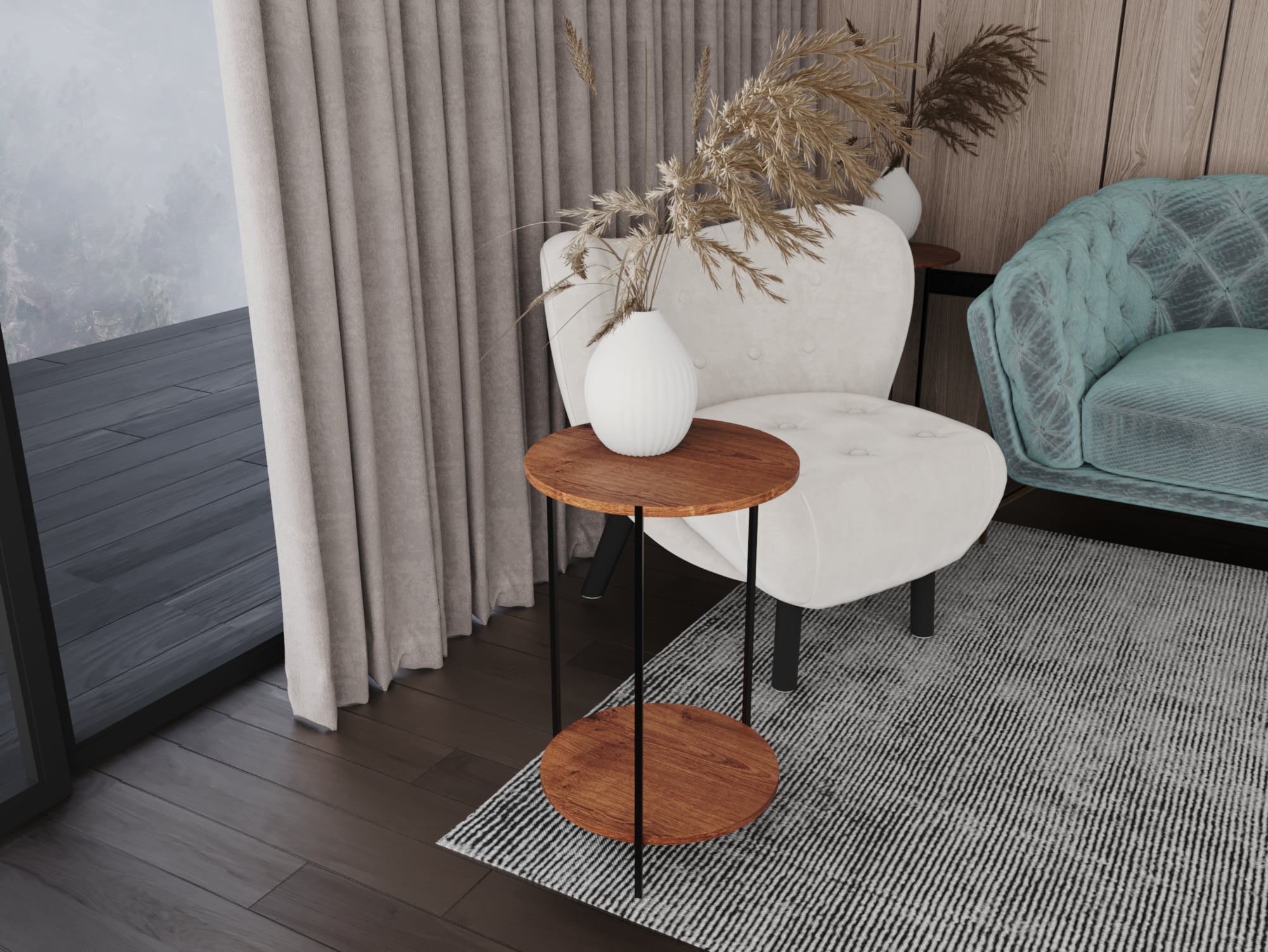 أكمل ديكور منزلك مع ترابيزة ديو ستايل، ترابيزة جانبية بتصميم دائري مودرن مصنوعة من هيكل معدني وسطح من الخشب عالي المتانة، كما إنها مزودة برف من الخشب.