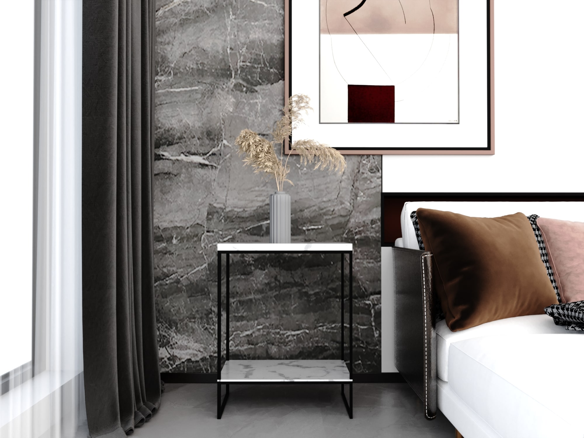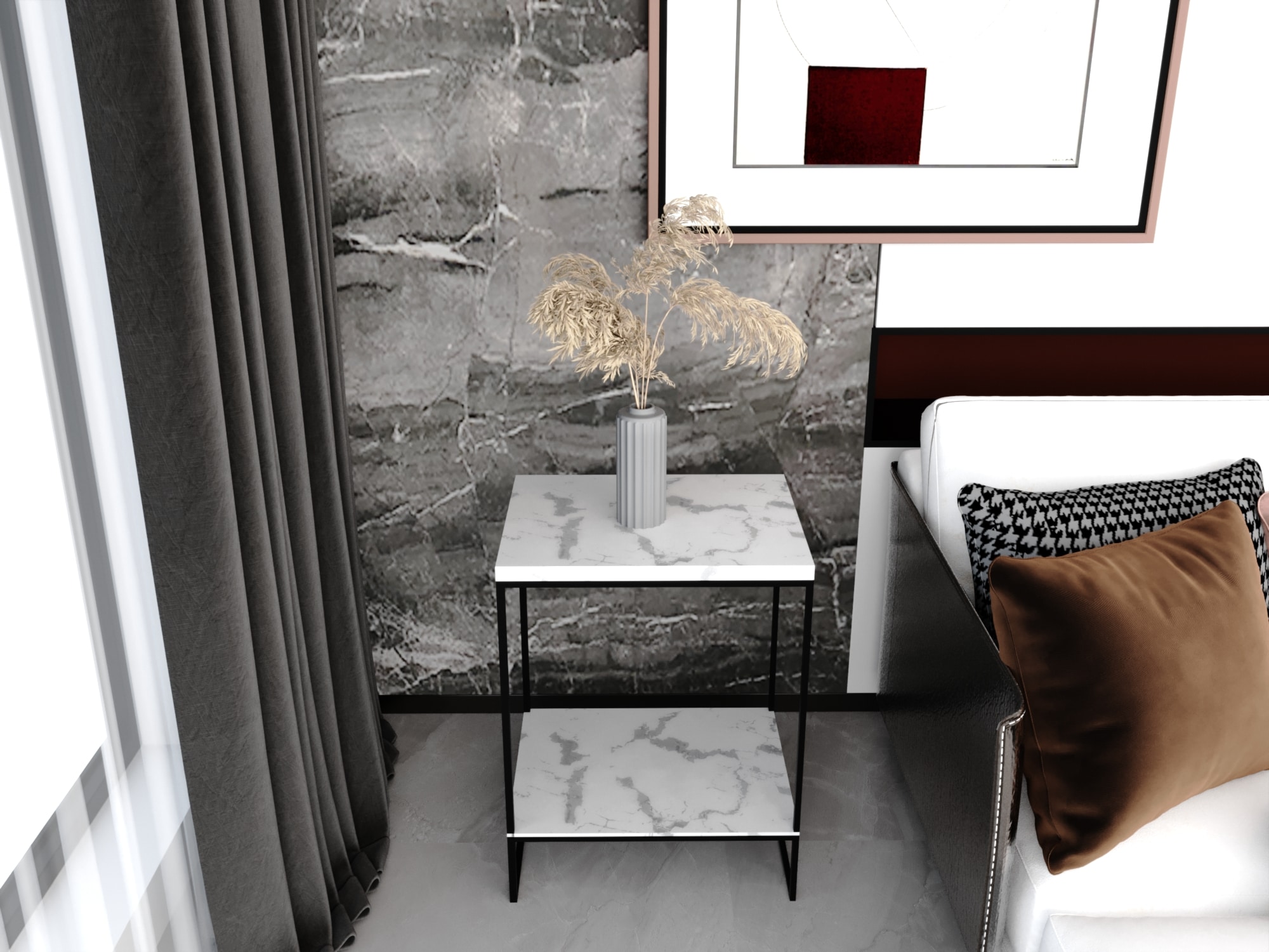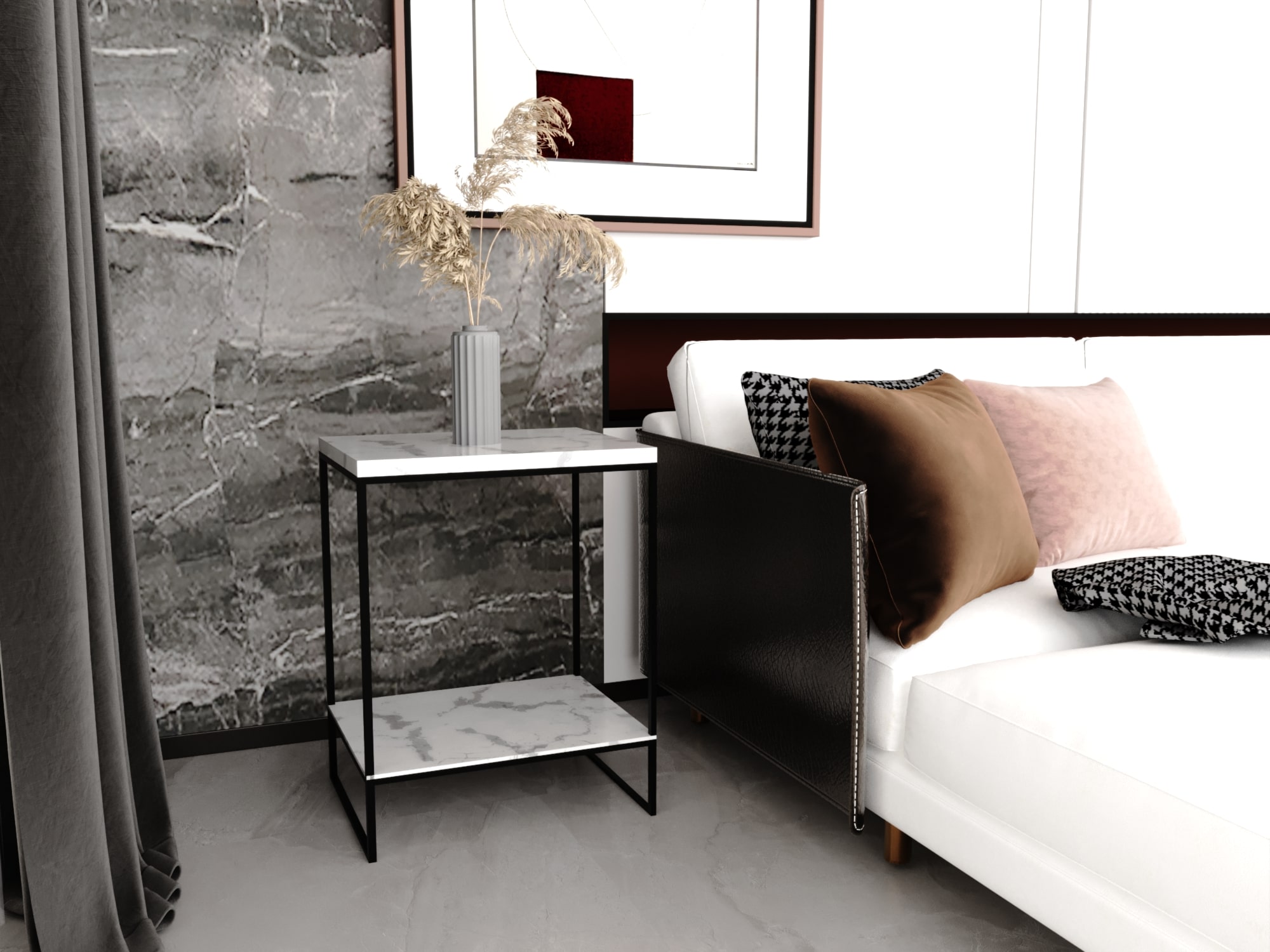 ترابيزة جانبية معدنية بسطح رخام كرارة – أسود وأبيض