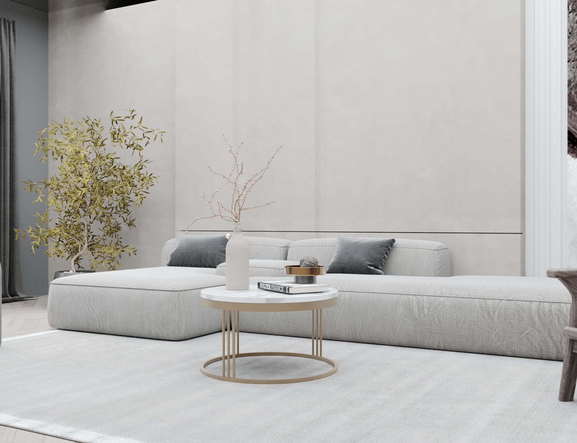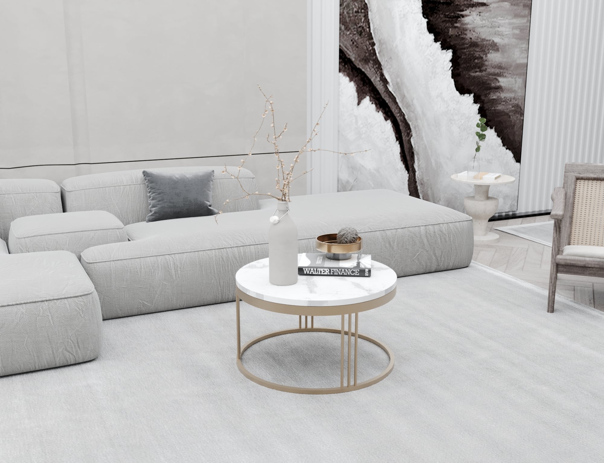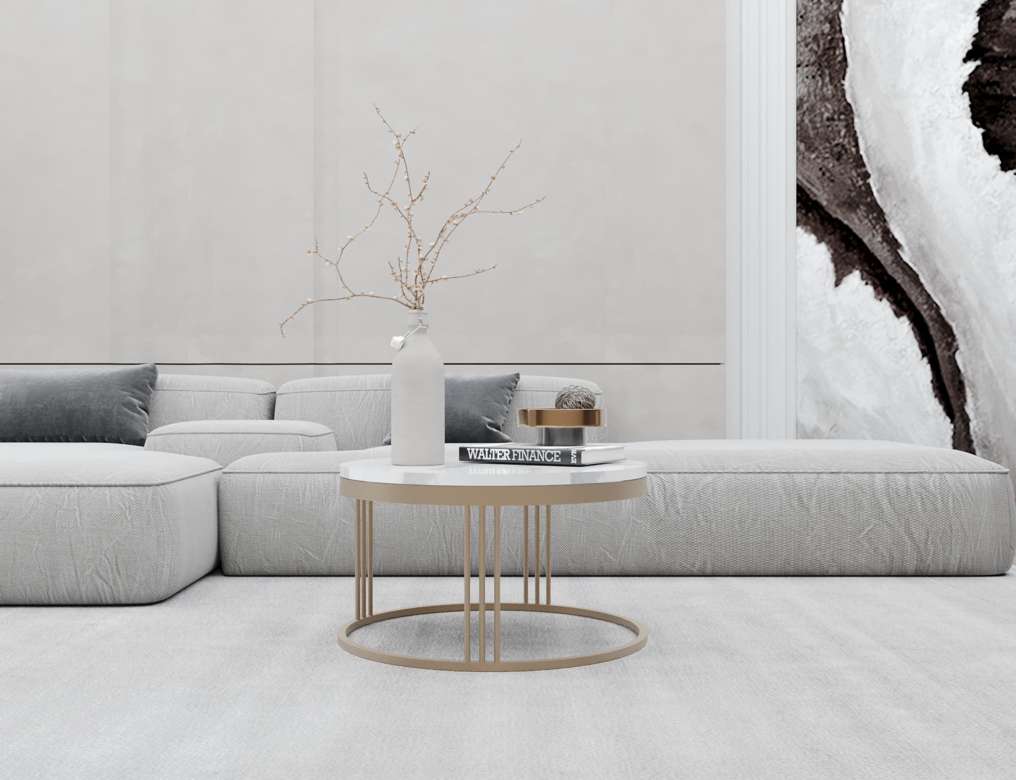 ترابيزة ميرا ستون ترابيزة ركنة مودرن دائرية من الستيل والرخام الأبيض