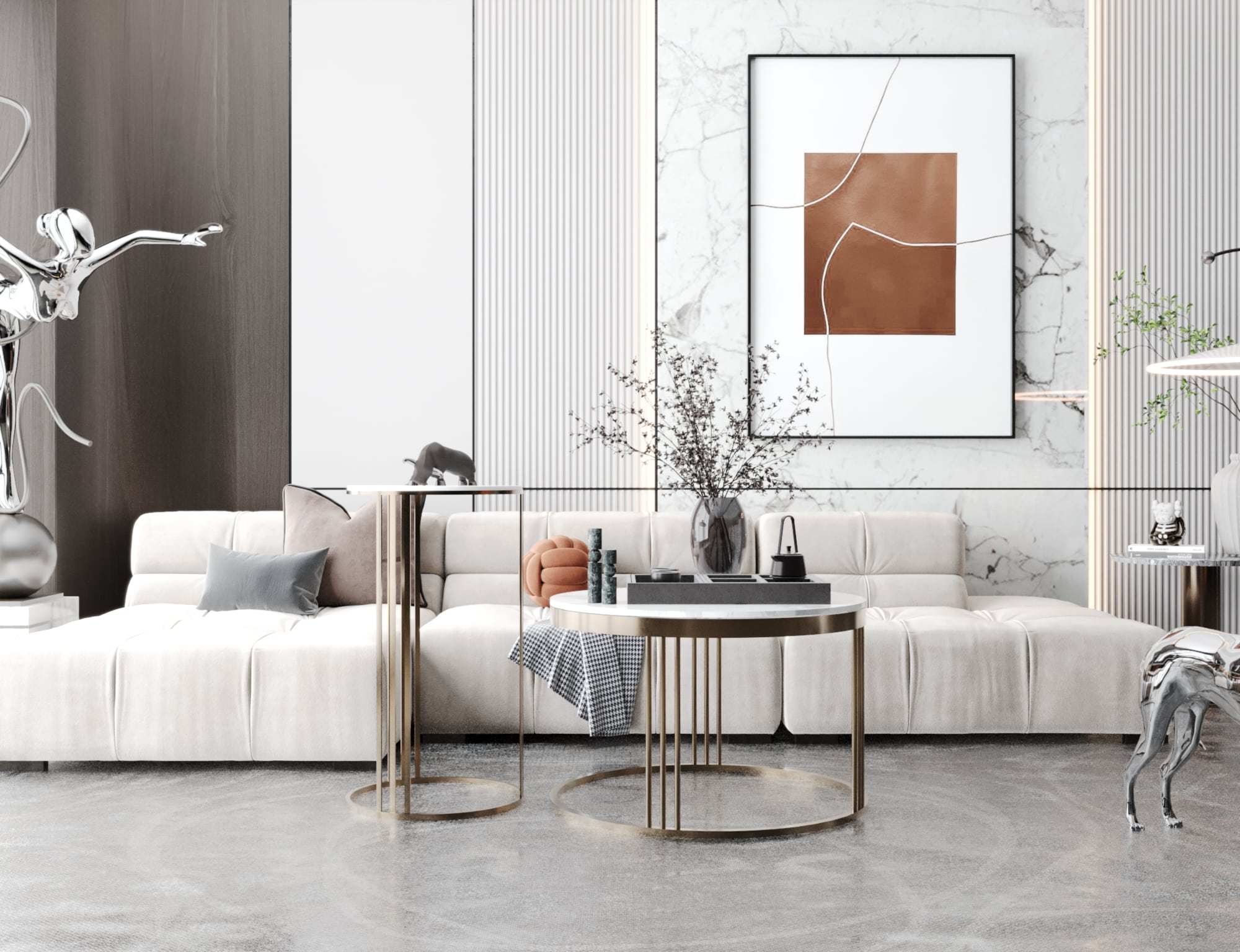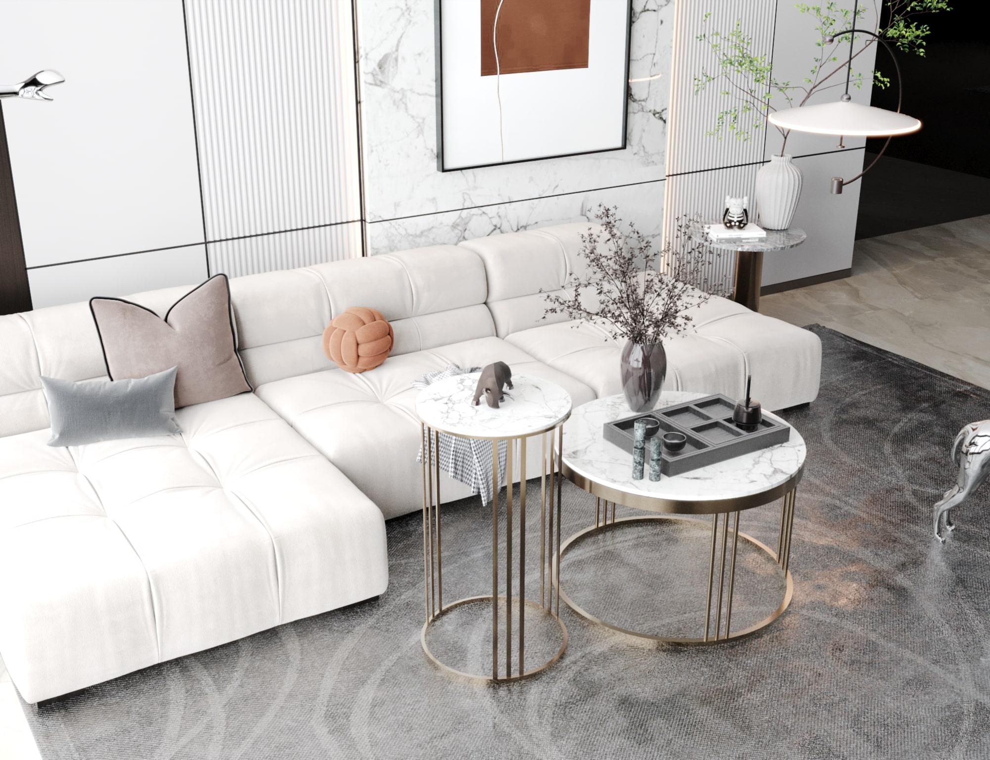 - اللون: إطار ذهبي مع سطح من الرخام الأبيض.