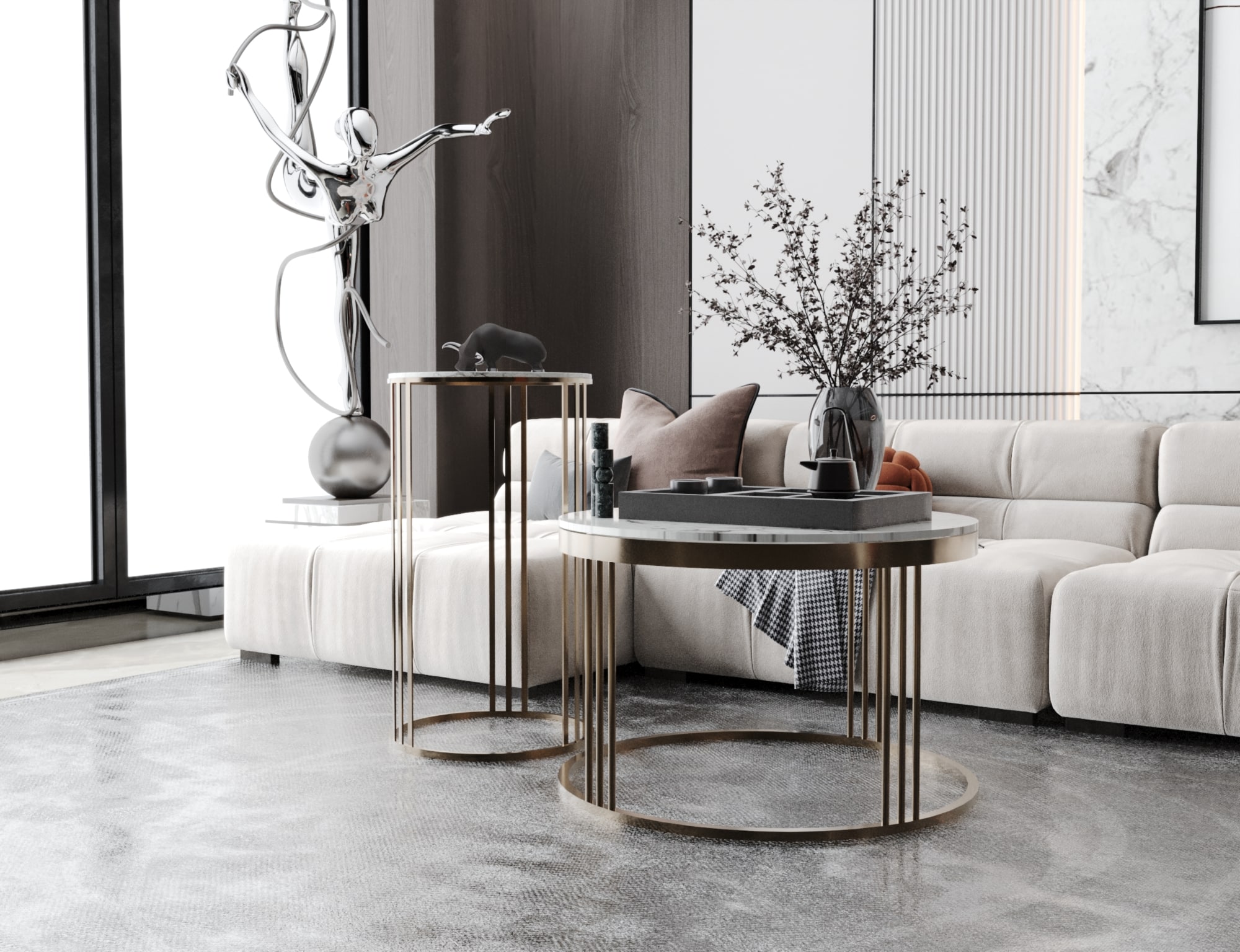 ترابيزة انتريه مودرن من الستيل والرخام مكونة من قطعتين مختلفتين الأحجام متعددة الاستخدام
