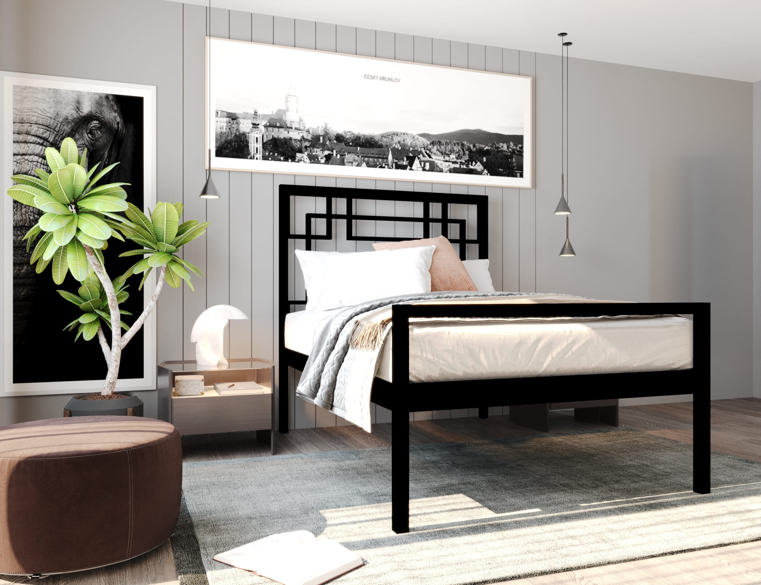 فتصميم السرير الأنيق ولونة الأسود الجذاب يجعله يتماشى مع مختلف أنماط الديكور الموجودة في الغرف.