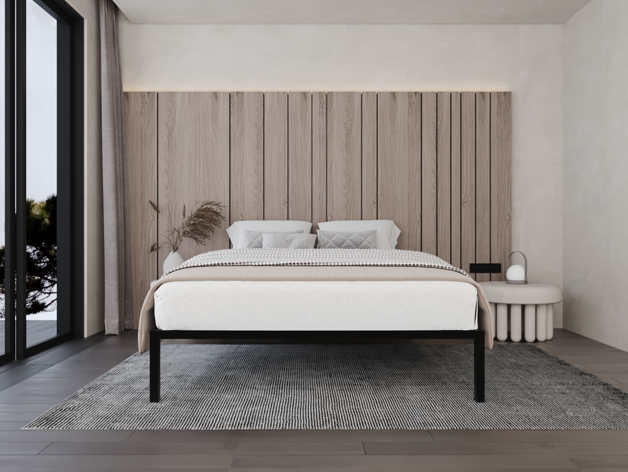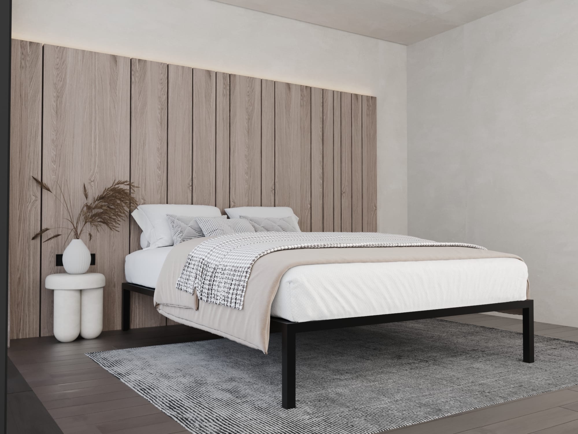 يأتي السرير مع ألواح من خشب موسكي مما يجعله يدعم أي نوع من المراتب، كما أن هيكل السرير مطلي بدهان الكتروستاتيك مقاوم للصدأ والرطوبة.